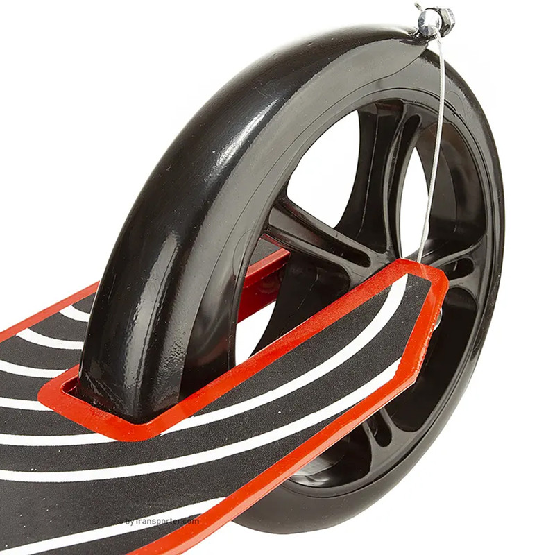 سایر توضیحات | دارای جک فنر دار- دارای کفی ضد لغزش- دارای ضامن قفل شونده- وزن اسکوتر 4.7 کیلوگرم- وزن قابل تحمل 90 کیلوگرم- مناسب جوانان و نوجوانان- مجهز به ترمز پدالی و سیمی- طول اسکوتر 90 سانتی متر- عرض کفی 15 سانتی متر- قابلیت تا شدن به منظور حمل آسان- جنس بدنه فلزی و مقاوم در برابر ضربه- جنس دسته ها از پلاستیک با قابلیت ضد لغزش- مجهز به دو گیره جهت اتصال و حمل وسایل- دارای دو چرخ ژله ای با قطر 200 میلی متر- قابلیت تنظیم ارتفاع فرمان بین 76 تا 102 سانتی متر- |