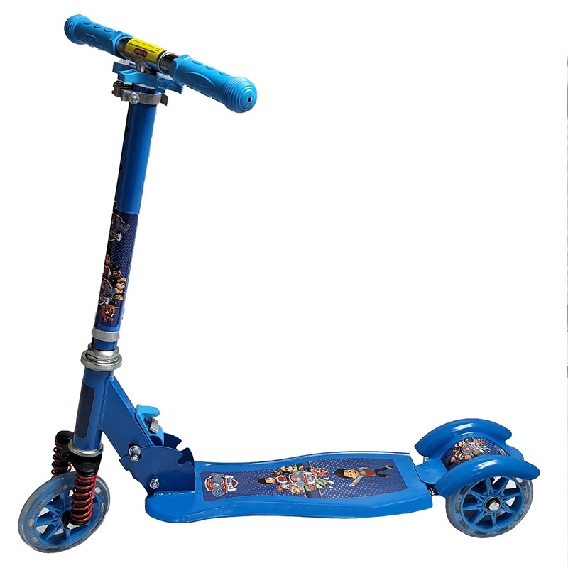 سایر توضیحات | طرح سگ های نگهبان- دارای کمک فنر چرخ جلو- قطر چرخ ها ۱۲۰ میلی متر- ترمز از نوع پدالی چرخ عقب- وزن قابل تحمل ۸۵ کیلوگرم- جنس دستگیره فرمان از پلاستیک- مناسب برای رده سنی ۷ تا ۱۲ سال- با قابلیت تا شدن برای حمل آسان- جنس بدنه فلزی مقاوم و مستحکم- قابلیت تنظیم ارتفاع فرمان در ۳ حالت- حداقل ارتفاع از سطح زمین ۶۱ سانتی متر- حداکثر ارتفاع از سطح زمین ۸۰ سانتی متر- دارای ۳ عدد چرخ از جنس پلاستیک فشرده- |
