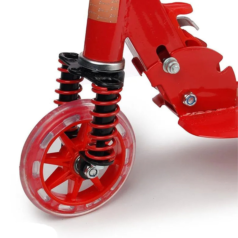 دارای 1 چرخ در جلو و 2 چرخ از جنس پلاستیک در قسمت عقب است. قطر چرخ ها 120 میلی متر می باشد و به کودکان کمک می کند تا کنترل بیشتری در حین حرکت داشته باشند و به خوبی تعادل خود را حفظ کنند. نوع ترمز در این اسکوتر پدالی است و روی چرخ عقب قرار دارد و توقف سریع و ایمن را تضمین می کند. کفیِ عریض و مقاوم این اسکوتر، ایمنی بیشتری را فراهم می کند و به نوجوانان اجازه می دهد که در هنگام استفاده پاهای خود را بدون ترس از لغزیدن روی آن قرار دهند.