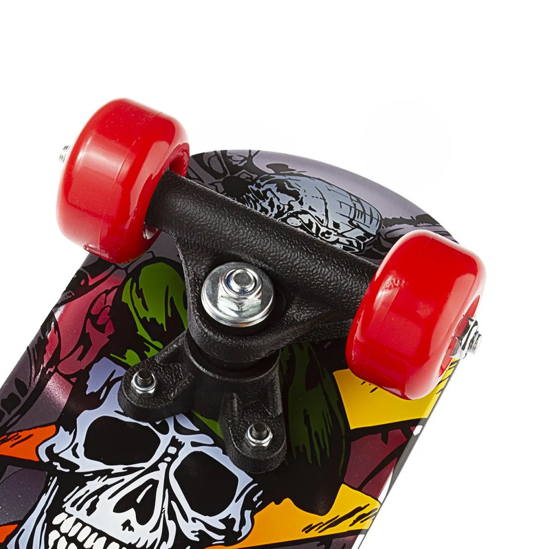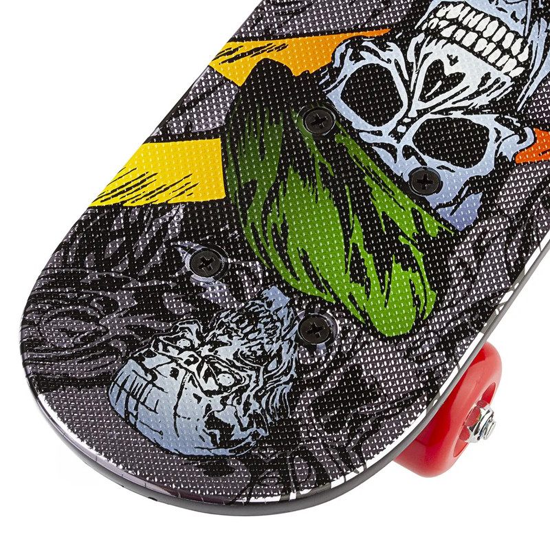اسکیت برد طرح دار کوچک ارائه شده، مناسب برای نونهالانی است که می خواهند اصول اولیه را بیاموزند و از این بازی هیجان انگیز و لذت بخش را تجربه کنند. دِک یا عرشه ی این اسکیت برد از پلاستیک فشرده ساخته شده است. بسیار با دوام و مقاوم است و به راحتی آسیب نمی بیند. روکش ضد لغزش آن با طرح شیاردار، ثبات و ایمنی را فراهم می کند. در دو طرف تخته ی نقش های رنگی و مورد پسند کودکان به چشم می خورد که به جذابیت ظاهری آن افزوده است.