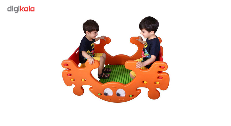 | سایر توضیحات | چشمان موجود در دو طرف آن هنگام تکان خوردن الاکلنگ به راست و چپ حرکت می کند! میز نیمکت و الاکلنگ ظرفیت 4 کودک همزمان را دارد و بسیار برای کودکان جذاب و هیجان آور است بسته بندی این محصول شامل قطعاتی که در تصویر زیر می بینید می باشد دو بخش پلاستیکی بزرگ برای دو طرف میز، دو پشتی برای نیمکت ها، دو صندلی نیمکتی و رویه میز قطعاتی هستند که در بسته بندی محصول میز پیک نیک و الاکلنگ موجود است؛ این محصول به راحتی نصب و دوباره جمع می شود و نصب آن نیاز به هیچ گونه ابزاری ندارد. |