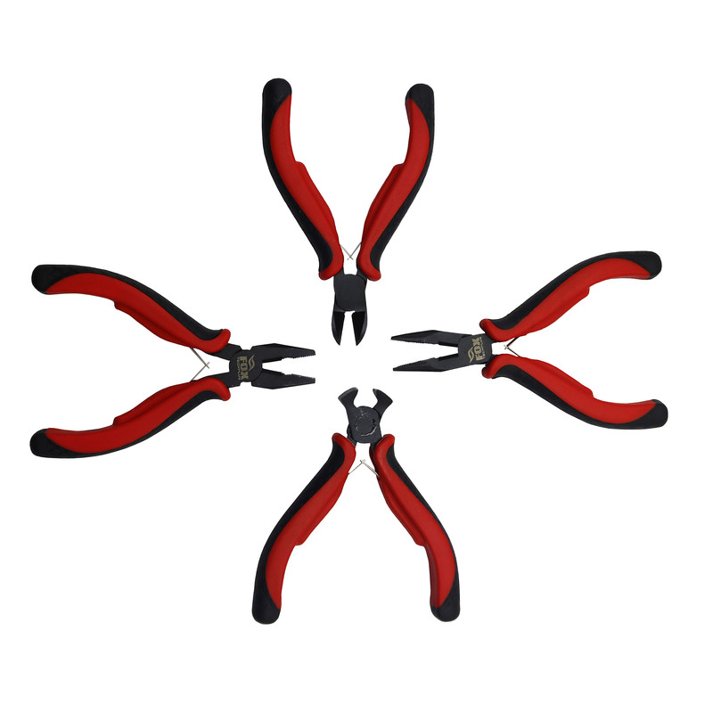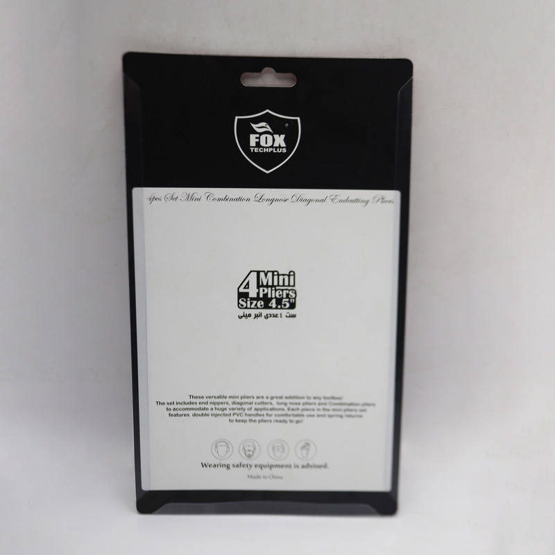 مجموعه ابزار فوق یکی از محصولات تولیدی شرکت «فاکس» (Fox) است. این محصول دارای چهار انبر کاربردی بوده که ضرورت وجود آنها در هر کیف ابزاری احساس میشود. ابزارهای این مجموعه را یک انبردست، یک دم باریک، یک سیم چین و یک انبر کف چین تشکیل میدهند. این انبرها سایز کوچکی برابر 4.5 اینچ دارند و برای انجام کارهای ظریف مورد استفاده قرار میگیرند. طول انبردست این مجموعه 11.5 سانتیمتر و طول دستهی آن 8.5 سانتیمتر است. حداکثر میزان باز شدن دهانهی این انبر نیز 25 میلیمتر است. دم باریک و سیم چین این محصول نیز بهترتیب طولهایی برابر 13 و 11.5 سانتیمتر دارند. دهانهی دم باریک حداکثر به میزان 35 میلیمتر و سیم چین 25 میلیمتر باز میشود. انبر کف چین این مجموعه نیز طولی 10.5 سانتیمتری دارد و حداکثر میزان باز شدن دهانهی آن 15 میلیمتر است. در هر چهار انبر این محصول از دستههایی با روکش ضدلغزش استفاده شده است. بخش فلزی این ابزارها نیز برای مقاومت بیشتر ساختاری فولادی دارند.