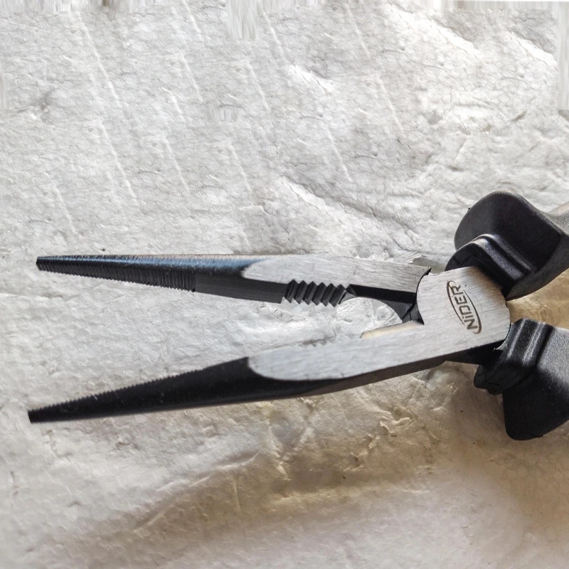 انبر دم باریک نیدر مدHEAVY DUTY cr-v6 سایز 6اینچ روکش پلاستیکی با بدنه ای از جنس الیاژ کروم وانادیوم به منظور کنترل لغزش و دارای خاصیت ضد زنگ زدگی است.برای ساخت این انبر از مواد اولیه ی با کیفیت بالا استفاده میشود.تیغه های این ابزار از فولاد سخت کاری و حرارات داده شده ساخته شده است که باعث مقاومت بالای این وسیله در برابر فشار میشود و دوام و طول عمر آن را افزایش میدهد.بر روی تیغه این محصول قسمتی برای برش سیم یا اجسام دیگر قرار دارد و تیغه های آن با بالاترین کیفیت پولیش شده و لبه های آن شفاف شده است.دمباریک یکی از پرکاربردترین ابزار های تولید شده در شرکت نیدر است با توجه به کاربردهای متفاوتی که دارد انواع و سایز های مختلفی هم دارد.