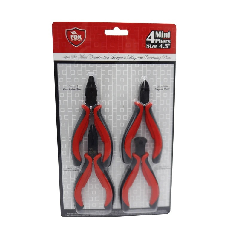 مجموعه ابزار فوق یکی از محصولات تولیدی شرکت «فاکس» (Fox) است. این محصول دارای چهار انبر کاربردی بوده که ضرورت وجود آنها در هر کیف ابزاری احساس میشود. ابزارهای این مجموعه را یک انبردست، یک دم باریک، یک سیم چین و یک انبر کف چین تشکیل میدهند. این انبرها سایز کوچکی برابر 4.5 اینچ دارند و برای انجام کارهای ظریف مورد استفاده قرار میگیرند. طول انبردست این مجموعه 11.5 سانتیمتر و طول دستهی آن 8.5 سانتیمتر است. حداکثر میزان باز شدن دهانهی این انبر نیز 25 میلیمتر است. دم باریک و سیم چین این محصول نیز بهترتیب طولهایی برابر 13 و 11.5 سانتیمتر دارند. دهانهی دم باریک حداکثر به میزان 35 میلیمتر و سیم چین 25 میلیمتر باز میشود. انبر کف چین این مجموعه نیز طولی 10.5 سانتیمتری دارد و حداکثر میزان باز شدن دهانهی آن 15 میلیمتر است. در هر چهار انبر این محصول از دستههایی با روکش ضدلغزش استفاده شده است. بخش فلزی این ابزارها نیز برای مقاومت بیشتر ساختاری فولادی دارند.
