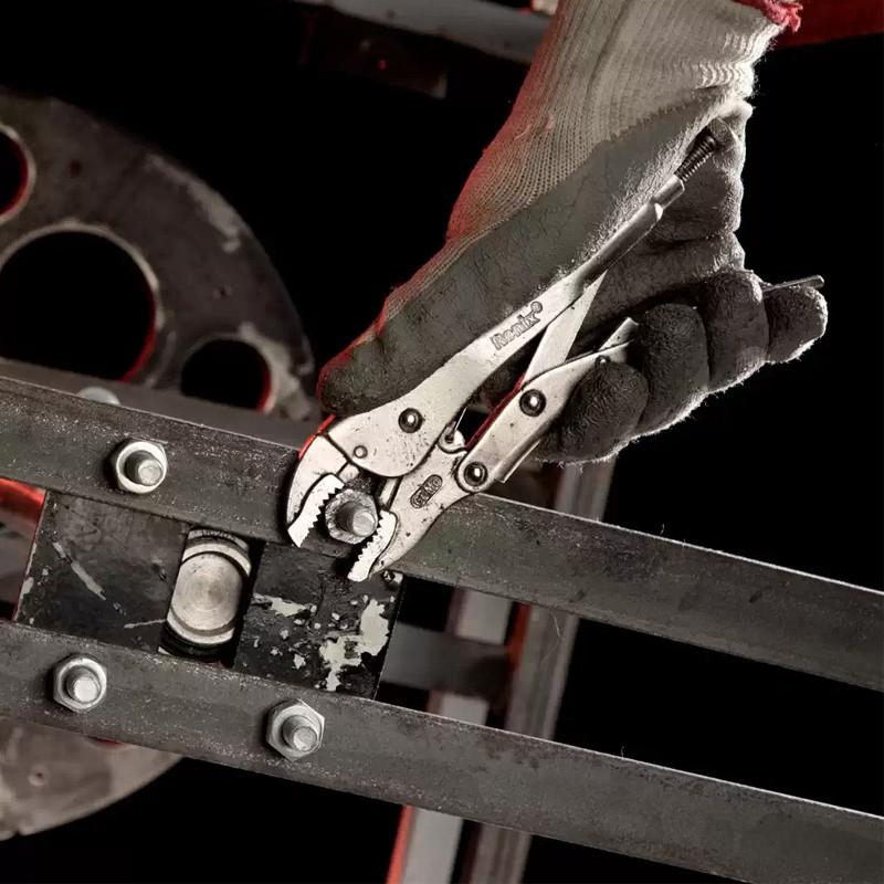 سایر توضیحات تولید شده از ماده باکیفیت Cr-Mo |مجهز به فک‌ها و دندانه‌های سخت‌کاری شده | قابلیت تنظیم آچار آلن تحتانی | سیستم قفل‌کن ماشه انبر