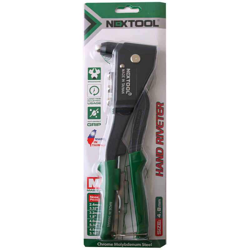 انبرپرچ Nextool یکی از حرفهای ترین و با دوام ترین انبرپرچهای موجود در بازار است. از این ابزار هم در خانه وهم در صنعت مورد استفاده قرارمیگیرد. انبرپرچ Nextool مجهز به بدنه قوی میباشد. انبرپرچها نیز باتوجه به استفاده از هرسایز میخ پرچ، دارای سریهای مختلف است. انبر پرچ Nextool قابلیت پرچ کاری جهت میخ پرچهای سایز 6/4، 0/4، 2/3، 4/2 میلیمتر است. توسط آچار تعبیه شده در زیر دسته میتوان این سریها (نازلها) را جابجا نمود. انبرپرچ Nextool توانایی پرچ کاری انواع میخ پرچ از جنس استیل وآلومینیوم دارد. فک داخلی این انبرپرچ، سه تکه بوده که بهترین نوع فک جهت گرفتن میخ پرچ است و انجام پرچ کاری مستحکم را اطمینان میدهد. این انبرپرچ مجهز به روکش دسته PVC ضدلغزش وارگونومیک است. همچنین برای حفظ سلامت دستگاه، یک ضامن فلزی در انتهای دسته قرارگرفته تا در زمانی که از دستگاه استفاده نمیکنید انبر قفل شود و در زمان عدم استفاده بسته نگه داشته شود.