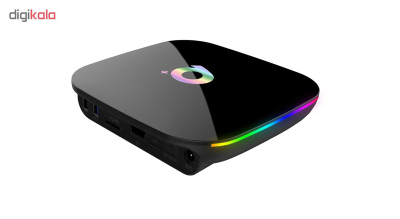 محصول Q plus یک اندروید باکس است برای هوشمند سازی تلویزیون که با حافظه ی ذخیره سازی 32 گیگابایت eMMC پرسرعت نسل جدید با قابلیت نصب تعداد زیادی اپلیکیشن، بازی و برنامه های کاربردی و همچنین ذخیره سازی حجم قابل توجهی عکس، فیلم و موسیقی، حافظه ی سیستمی 4 گیگابایتی DDR3 و ظاهری بسیار زیبا به رنگ مشکی (به همراه ال ای دی های رنگارنگ که دور تا دور محصول را مانند رنگین کمان زیبا کرده اند)، وزن و ابعاد مناسب، طراحی شده است. این محصول دارای سیستم عامل اندروید 9.0، پردازشگر مرکزی قوی Allwinner new H6 quad-core high-end master chip، پردازنده گرافیکی پر سرعت Mali T720 MP2، پورت شبکه LAN، شبکه وایرلس Dual band (2.4GHz/5.8GHz) IEEE 802.11a/b/g/n، درگاه USB 3.0، بلوتوث 4، پورت بسیار پر سرعت HDMI 2.1، پشتیبانی از محتوای تصویری و گرافیکی شگفت انگیز محتوای تصویری و گرافیکی 4K UHD@60fps, H.265 و 6K@30fps به لطف موتور پردازشی Allwinner Phoenix 3.0 VE می باشد. در این اندروید باکس به سادگی، با اتصال گوشی و یا تبلت اندرویدی و یا اپل به همان شبکه وایرلسی که این اندروید باکس به آن متصل می باشد، می توان محتوای تصویری و ویدیویی موبایل و یا تبلت را بر روی صفحه های نمایش بزرگ تلویزیون به صورت وایرلس مشاهده کرد. استفاده از این قابلیت مستلزم نصب اپ های مورد نیاز و یا فعال سازی مجوزهای استفاده توسط کاربر می باشد. از دیگر ویژگی های این محصول، پشتیبانی از فرمت HDR (گستره دینامیکی بالا) در نمایش تصاویر ویدئویی می باشد. این فرمت، تصاویری واقعی تر با عمق رنگ بیشتر ایجاد می کند. در این اندروید باکس همچنین با استفاده از تکنولوژی محدوده رنگ گسترده تر با پشتیبانی از عمق رنگ 10 بیتی به ازای هر رنگ در راستای ایجاد تصاویر با طیف رنگ عالی و سایه روشن های طبیعی به همراه انتقال روان تر نمایش رنگ ها از طیف روشن به تیره، تصاویری خارق العاده خلق می شود. این محصول ابزاری بسیار مناسب برای هوشمند سازی تلویزیون به شمار می آید. این اندروید باکس حتی برای مقاصد گیمینگ نیز گزینه ی مناسبی می باشد.