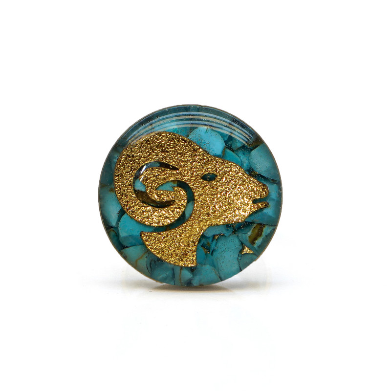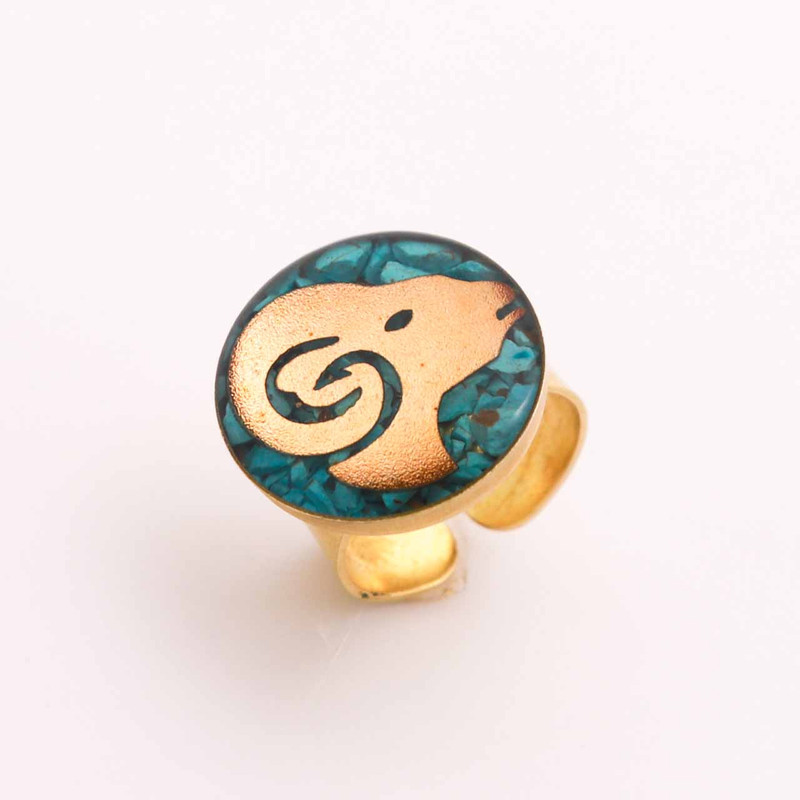 سنگ طبیعی فیروزه که در اطراف نماد قرار گرفته، با رنگ آبی آرامشبخش خود این انگشتر را به شاهکاری واقعی تبدیل کرده است. فیروزه نه تنها زیبایی بینظیری به انگشتر میدهد، بلکه بهعنوان سنگی معروف برای جذب انرژی مثبت و ایجاد حس آرامش شناخته میشود.
