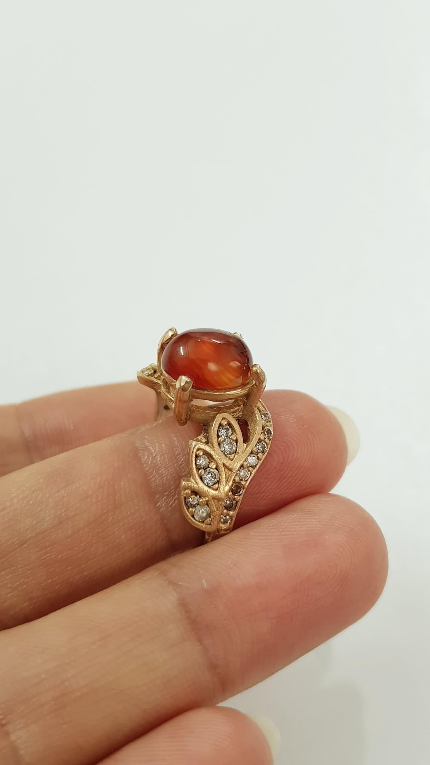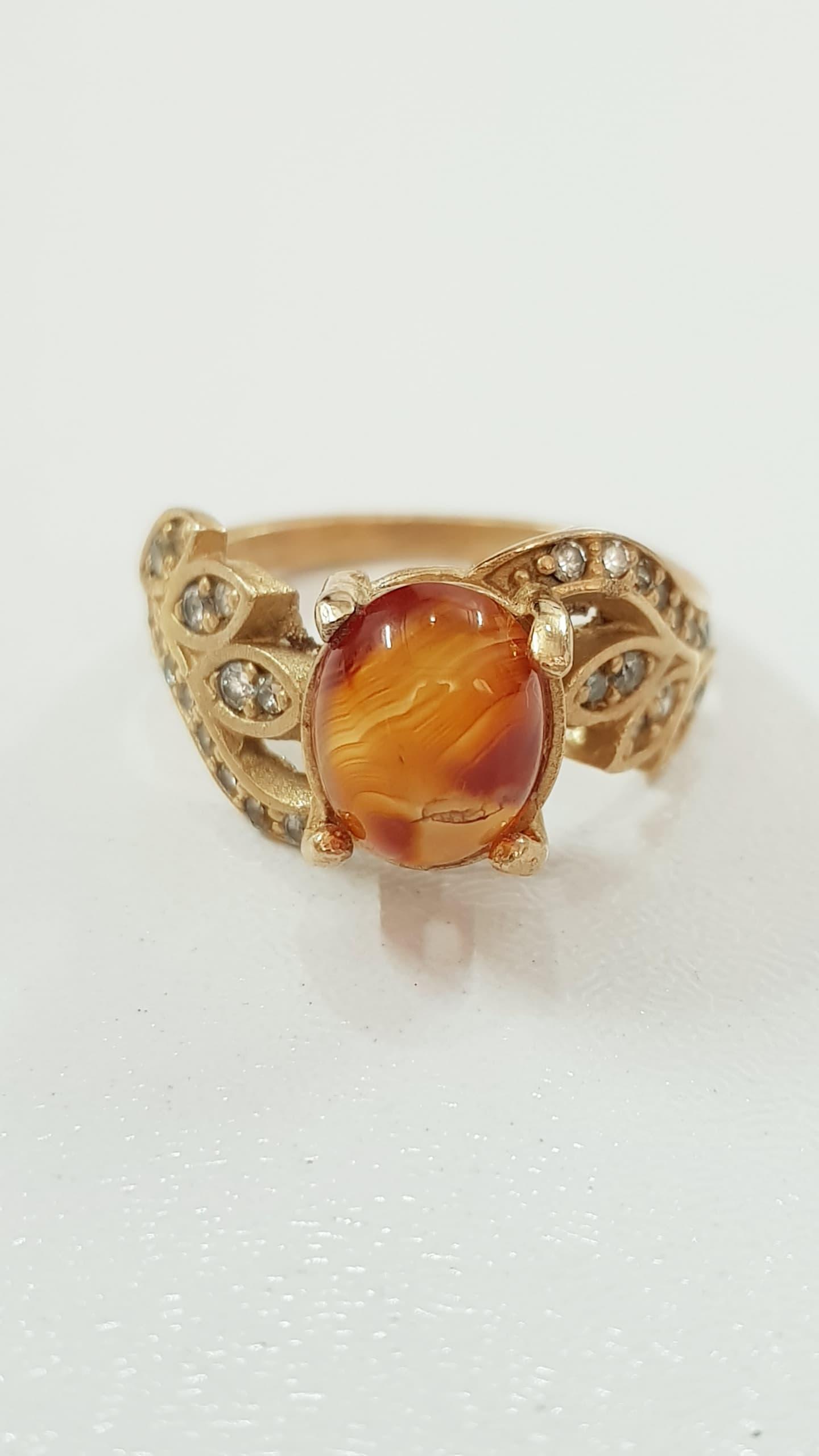 انگشتر طلاروس کار شده با سنگ عقیق اصل ، کار فوقالعاده زیبا و درخشان ، سایز ۱۰-۹ ضد حساسیت