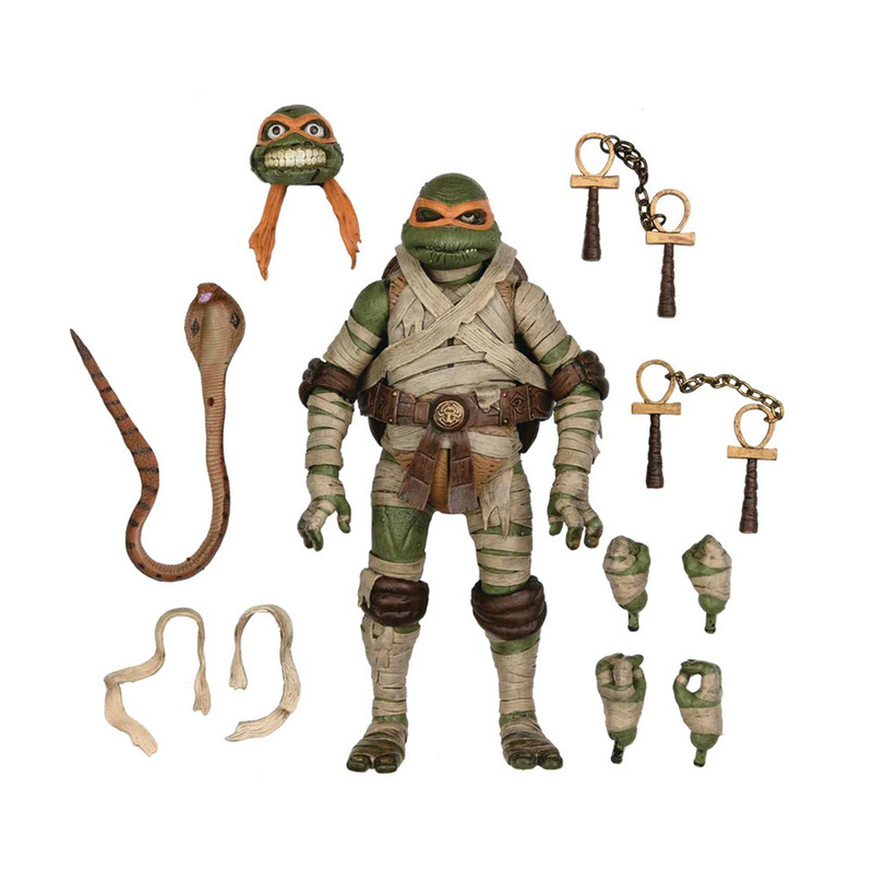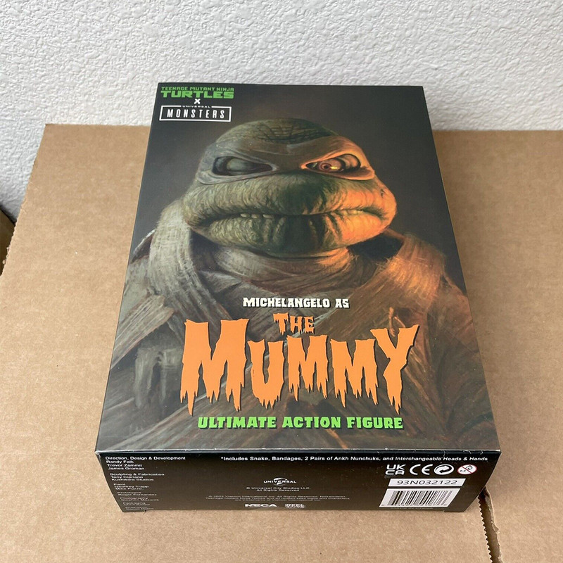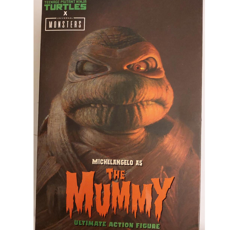 | سایر توضیحات | NECA بسیار هیجان زده است که افزوده جدیدی به مجموعه اکشن فیگورهای Universal Monsters x Teenage Mutant Ninja Turtles اعلام می کند. این خط به معروف ترین لاک پشت های جهان و نمادهای ترسناک یونیورسال ادای احترام می کند. میکل آنژ در نقش مومیایی، لاکپشت را بهعنوان مومیایی دوباره تجسم میکند، که از خواب ابدی خود با عشقی بیپایان… پیتزا بیدار شده است! با پای او دیر نکنید وگرنه ممکن است با The Mummy’s Curse مخالفت کنید! شامل دو نانچاک آنخ، سر و دست قابل تعویض، کبری قابل خم شدن، و پرده های بانداژ اضافی. در بسته بندی جعبه پنجره ای مناسب برای کلکسیونر با دریچه بازشو با تصویر سفارشی ارائه می شود. |