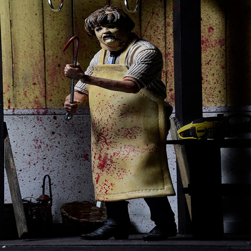 | سایر توضیحات | بر اساس فیلم کشتار اره برقی تگزاس محصول 1974 Leatherface قد 7 اینچی با بیش از 25 نقطه مفصلی دارد لوازم جانبی شامل: اره برقی، چاقو، چکش، قلاب گوشت، قیچی و پیش بند وینیل ویژگی ها: 2 سر قابل تعویض جعبه پنجره دوستدار کلکسیونر با دریچه بازشو |