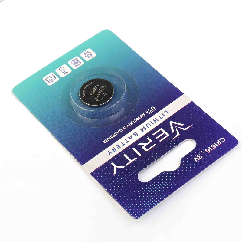 باتری CR1616 وریتی دارای قطری به اندازه 16 میلی متر و و ضخامت 1.6 میلی متر میباشد.این باتری دارای تکنولوژی لیتیومی میباشد .