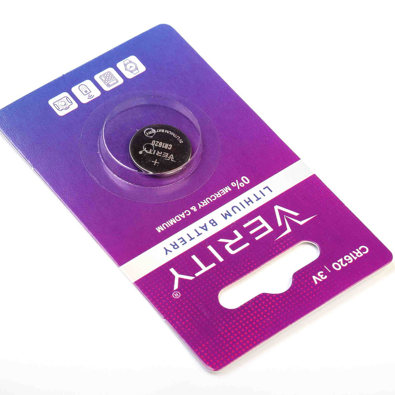 باتری CR1620 وریتی دارای قطری به اندازه 16 میلی متر و و ضخامت 2.0 میلی متر میباشد.این باتری دارای تکنولوژی لیتیومی میباشد .