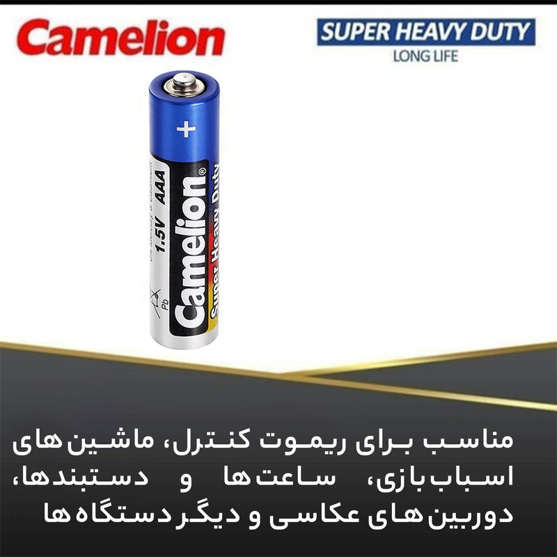 نیمقلمی کملیون مدل Super Heavy Duty نیز یکی دیگر از انواع باتریهاست که برای استفاده در دستگاههای کوچک مناسب است. این بدین معناست که این باتریها دارای ظرفیت بیشتری نسبت به باتریهای قلمی هستند و در نتیجه برای استفاده در دستگاههایی که نیاز به مصرف انرژی بیشتری دارند، مناسبتر هستند.