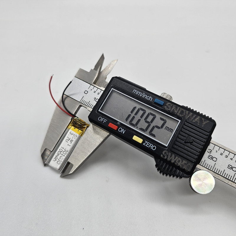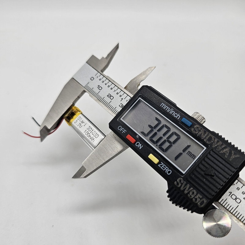 باتری لیتیومی 3.7 ولت استاروان مدل 301030 ابعاد 31×11×3 میلی متر ظرفیت 100 میلی آمپر دارای برد محافظ دقت داشته باشید محصولات مشابه که فاقد برند هستن ظرفیت واقعی آنها بسیار کمتر از ظرفیت اسمی آنها میباشد به همین دلیل محصولی که به دست شما میرسد باید برند استاروان روی آن درج شده باشد دقت کنید که باتری ممکنه حین حمل و نقل شکلش کمی دفورمه شود که این نشانه خراب بودن باتری نیست