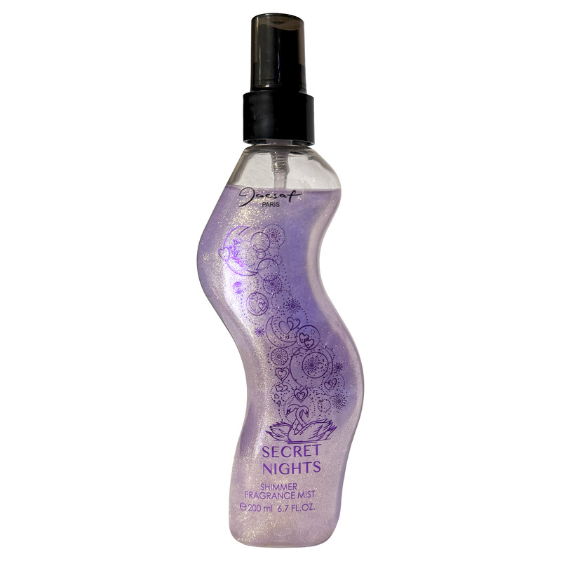 ژک ساف | JACSAF برند مشهور ایرانی که بسیار خوش آواز بوده است به تازگی اقدام به تولید بادی اسپلش ها نیز کرده است تا محصولات خود را یک سطح نیز بالاتر ببرد و تمام محصولات خشبو کننده را سعی کند در بر بگیرد بادی اسپلش زنانه سکرت نایت 200 میل ژک ساف یک عطر پودری گلی است که با انفجار طراوت و شادابی نیز شروع می شود و در دنباله آن با رایحه پودری از مشک و گل ها رو به رو می شود، و همچنین این محصول درخشان بوده است. شما با استفاده از این محصول از خود بانویی جسور و جذاب نیز می سازید. شما به محض اسپری این بادی اسپلش نت آغازین شروع به کار می کند که این نت دارای بوی خنک و تلخ بوده است. بعد از گذشت مدت زمانی نت میانی جایگزین نت آغازین می شود.