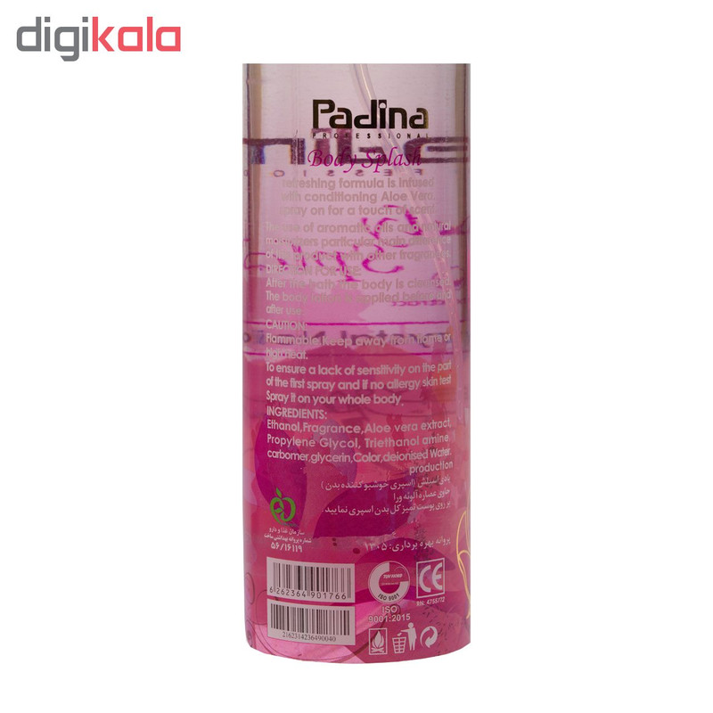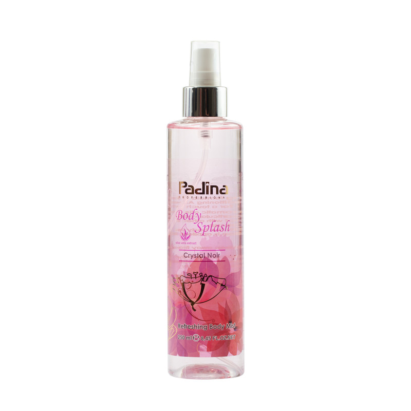 بادی اسپلش‌ اسپری‌ خوشبوکننده مخصوص بدن می باشد که کاملا مایع و رقیق بوده و حاوی آب، عصاره آلوئه ورا و رطوبت رسان و ترکیبات طبیعی است. با اضـافه کردن ترکـیباتی در ساختار این محصول، قابلیت چند کاره به آن می دهند یعنی به عنوان مثال علاوه بر خاصیت خوشبوکنندگی ویژگیهایی دیگری چون نرم کنندگی پوست، رطوبت رسانی و ضدآفتاب نیز به آن می دهند. بادی اسپلش پادینا مدل Crystal Noir حاوی درصد بالایی رطوبت رسان می باشد که رطوبت مورد نیاز پوست را که به خاطر استحمام از بین می‌رود، تامین می‌کند. آبرسانی به پوست را انجام می‌دهند و باعث جلوگیری از خشک شدن پوست می‌شود. در نتیجه با آبرسانی مناسب پوست، از تعریق بیش از حد جلوگیری می کنند. این محصول علاوه بر رطوبت رسان حاوی نرم کننده نیز می باشد که باعث نرمی و شادابی پوست می شود. و خشکی پوست که بسیاری از افراد پس از استحمام از آن رنج می برند را از بین می برد. لذا بهترین زمان استفاده از آن بعد از استحمام می باشد که بدن با حوله خشک شده البته بهتر است کمی مرطوب بماند و بعد بر روی بدن اسپری می شود بهتر است بادی اسپلش بر روی پوست خشک شود و بعد لباس پوشیده شود.