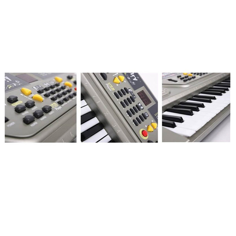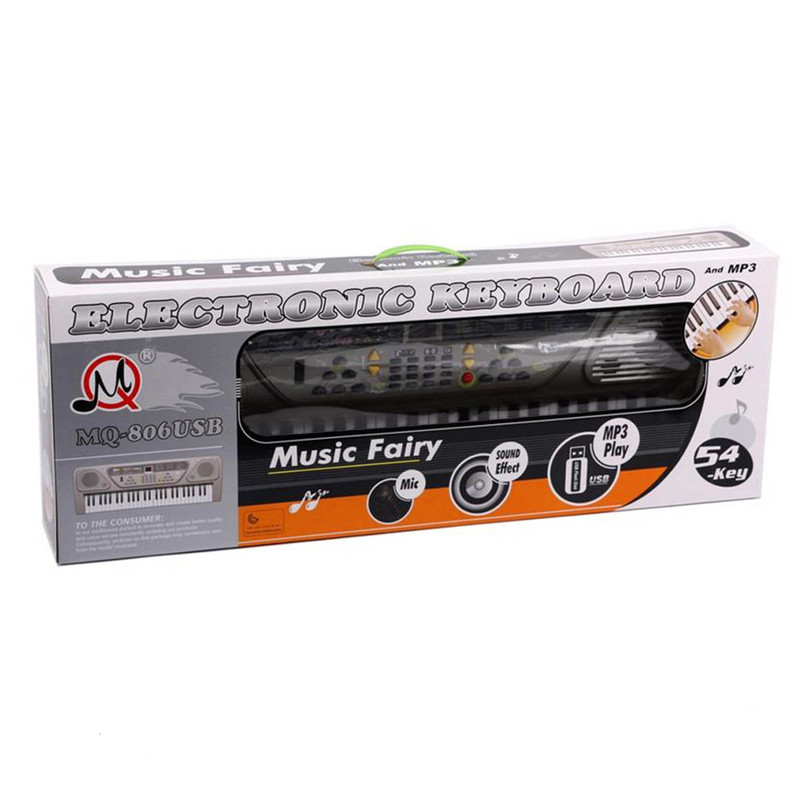 سایر توضیحات | - دارای 54 کلید بر کیبورد - قابلیت پخش موزیک MP3 - قابلیت پخش USB - دارای میکروفن -دارای افکت برای موزیک - دارای 100 تن - 100 ریتم - 10 دمو - دارای برنامه و قابلیت ضبط موسیقی - دارای برنامه برای آموزش - دارای تمپو - قابلیت کم و زیاد کردن صدا - دارای LCD بر روی صفحه - قابل استفاده به دو صورت باطری و برق - 6 باطری قلمی 1.5 ولتی - عدم وجود باطری در مجموعه - مناسب برای کودکان بالای 3 سال |