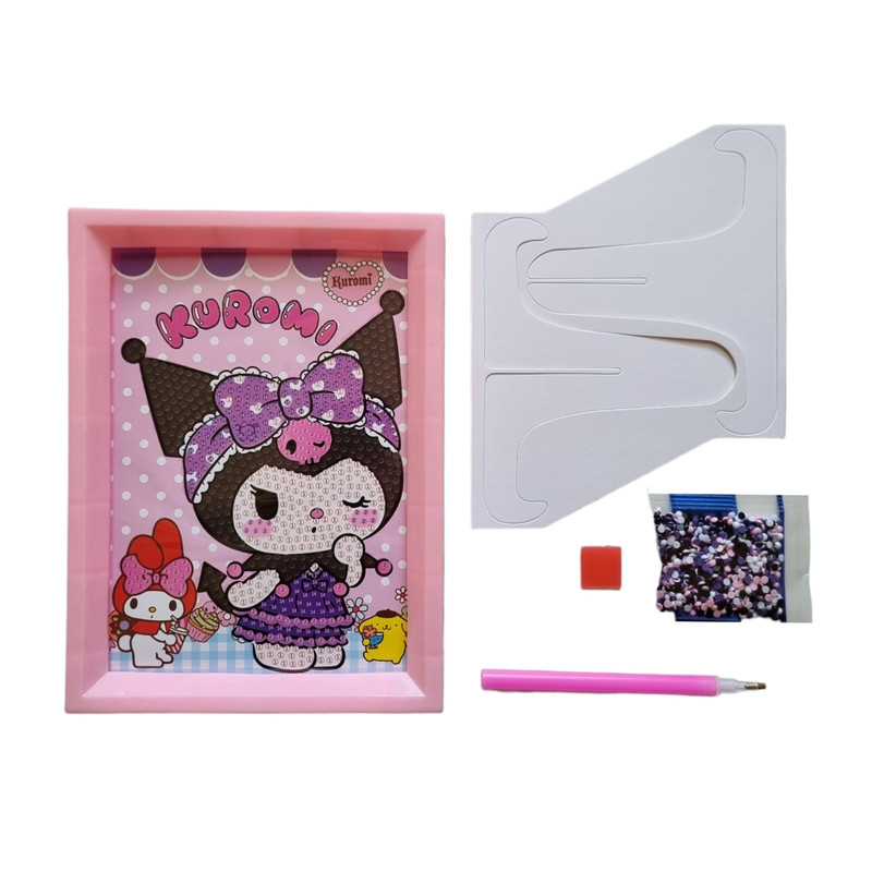 | اقلام همراه | پک نقاشی الماسی شامل یک صفحه مقوایی طرح دار، قاب، نگین یا الماس، چسب مخصوص، پایه کاغذی و قلم است |