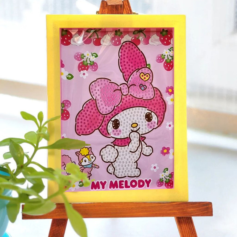 | اقلام همراه | پک نقاشی الماسی شامل یک صفحه مقوایی طرح دار، قاب، نگین یا الماس، چسب مخصوص، پایه کاغذی و قلم است |