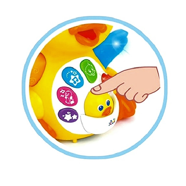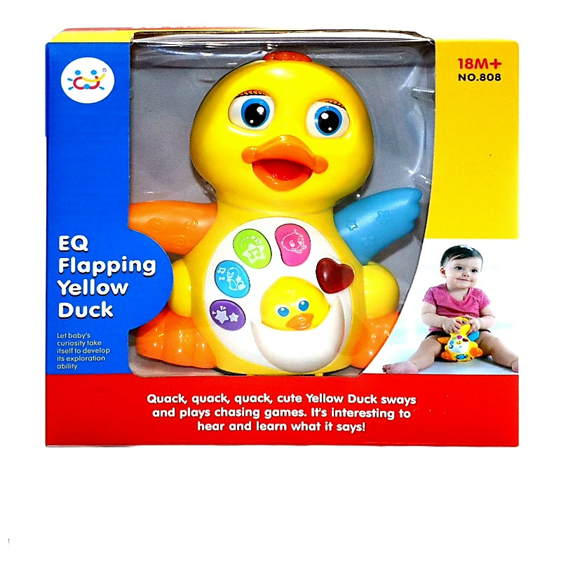 اردک زرد رقصنده هولي تويز، یک اسباب بازی موزیکال است که برای کودکان بالای 18 ماه طراحی شده است و در ساخت این اسباب بازی از چراغهای رنگی و کلیدهای متعدد استفاده شده که عملکردهای مختلفی دارند.اردک زرد رقصنده هولي تويز، دارای کلیدهای مختلف است که عملکردهای گوناگونی از خود نشان میدهند. بروی بالهای اردک چراغهای بسیار جذابی تعبیه شده است و این اردک را برای کودک بسیار خواستنی میکند. از طرفی این بالها متحرک بوده و قابلیت حرکت دارند. این محصول به گونهای طراحی شده است که حین حرکت در صورت برخورد با موانع مسیر جدیدی را برای حرکت خود انتخاب میکند و دهان و چشمان ارک نیز باز و بسته میشوند.
