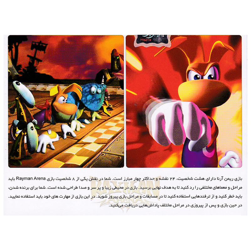 بازی ریمن آرنا دارای هشت شخصیت، 24 نقشه و حداکثر چهار مبارز است. شما در نقش یکی از 8 شخصیت بازی Rayman Arena باید مراحل و معماهای مختلفی را رد کنید تا به هدف نهایی برسید. بازی در محیطی زیبا و پر سر و صدا طراحی شده است. شما برای برنده شدن، باید خطر کنید و از ترفندهایی استفاده کنید تا در مسابقات و مراحل بازی پیروز شوید. در این بازی از مهارت های خود باید استفاده نمایید. در حین بازی و پس از پیروزی در مراحل مختلف پاداشهایی دریافت میکنید.