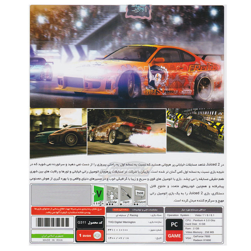 در بازی Juiced 2 شاهد مسابقات خیابانی پر هیچانی هستید که نسبت به نسخه اول به راحتی پیروزی را از دست نمی دهید و سرخورده نمی شوید که در نتیجه بازی نسبت به نسخه اول کمی آسان تر شده است. بازیکن با شرکت در مسابقات پرهیجان اتومبیل رانی خیابانی و تورها و رقابت های بین شهری طعم حقیقی مسابقه را می چشد. بازی با اتومبیل های قوی و سریع و زیبا با گرافیکی خوب و در مسیرهای دنیای واقعی و با بهره گیری از هوش مصنوعی پیشرفته و همچنین خودروهای متعدد و متنوع قابل دستکاری، بازی Juiced 2 را به یک بازی اتومبیل رانی مهیج و سرگرم کننده مبدل کرده است.