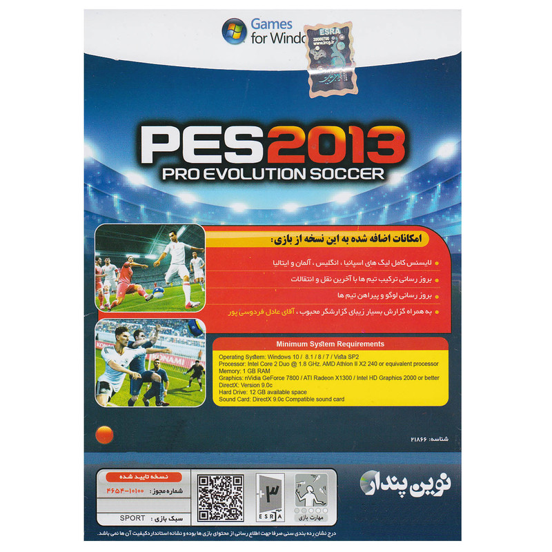 بازی فوتبال Pes 2013 آخرین آپدیت فصل 2022-2021 با گزارش آقای عادل فردوسی پور و امکانات اضافه شده در این نسخه انجام شده است . بروز رسانی ترکیب تیم ها با آخرین نقل و انتقالات و بروزرسانی لوگو و پیراهن تیم ها و به همراه گزارش بسیار زیبای گزارشگر محبوب آقای عادل فردوسی پور می باشد .