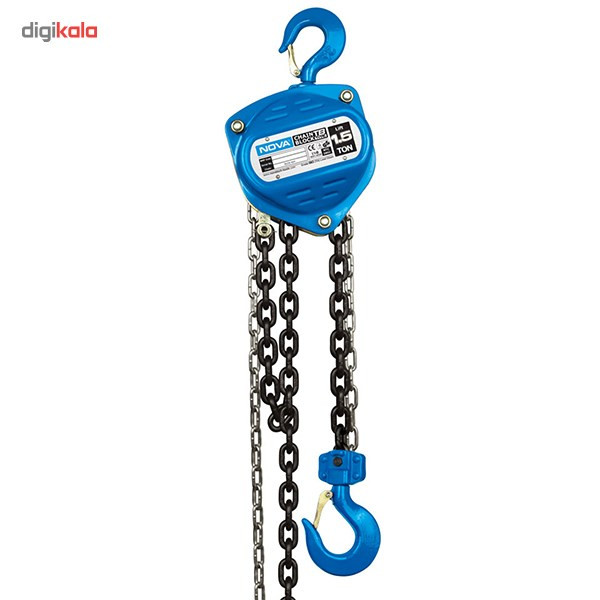 مدل NTC-2803 یک بالابر زنجیری و محصولی از شرکت نووا (Nova) است. این ابزار برای حمل بار مورد استفاده قرار میگیرد. این به کمک این بالابر میتوانید اجسامی تا وزن 1.5 تن را تا ارتفاع 3 متر بلند کرده و جابجا کنید. در تهیهی بالابر یا جرثقیل زنجیری، تناژ یا میزان تحمل وزن اهمیت بسیار زیادی دارد. این تناژ به صورت متعارف از 0.5 تن شروع میشود. بالابر زنجیری، جرثقیل دستی یا جرثقیل زنجیری نام ابزاری بالا برنده است که به همین منظور در کارگاههای مختلفی چون تعمیر و صافکاری خودرو، آهنگری و ... مورد استفاده قرار میگیرد. این ابزار از قسمتهای مختلفی مانند قلاب، هدایتگر زنجیر، ضامن، بلبرینگها، زنجیر و بدنه تشکیل شده است. برای استفاده از این ابزار باید نهایت دقت و نکات ایمنی را به کار ببندید تا ضمن انجام کار آسیبی به شما وارد نشود و جرثقیل هم معیوب نگردد. از جمله نکات ایمنی که حتما باید رعایت کنید، استفاده از دستکش است. در خصوص اصولی که باید در زمان استفاده از بالابر مورد بررسی قرار دهید این است که باید از ورود زنجیر تابدار به سیستم چرخدندهها جلوگیری کنید. در غیر این صورت ابزار آسیب جدی میبیند. با بالا کشیدن دسته یا آزاد کردن ضامن میتوانید زنجیر را به صورت آزاد بکشید. از دیگر نکاتی که باید در زمان تهیهی بالابرها مدنظر قرار دهید، وجود ضامن روی قلابها است. این ضامن تا حدودی از در رفتن قلاب جلوگیری میکند.