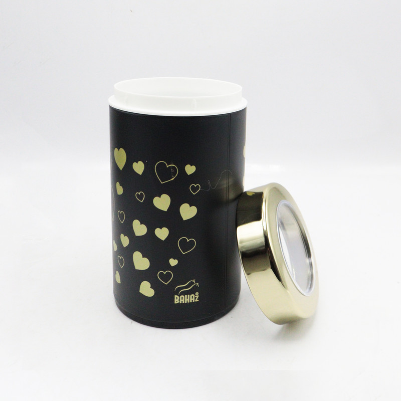 محفظه های نگهداری مواد غذایی، چای، قهوه، بیسکویت و خشکبار به شکل استوانه از جنس استیل و فلز آهن با درب دارای طلق گلس که محتویات درون آن را قابل مشاهده می نماید، در هر آشپزخانه ای کاربرد زیادی دارد و مواد خوراکی به بهترین نحو درون آنها طبقه بندی و جانمایی می گردد. همچنین درب غیرقابل نفوذ هوا باعث تازگی همیشگی محتویات داخل قوطی می شود و از ورود حشرات و گرد و غبار به آن جلوگیری می نماید.