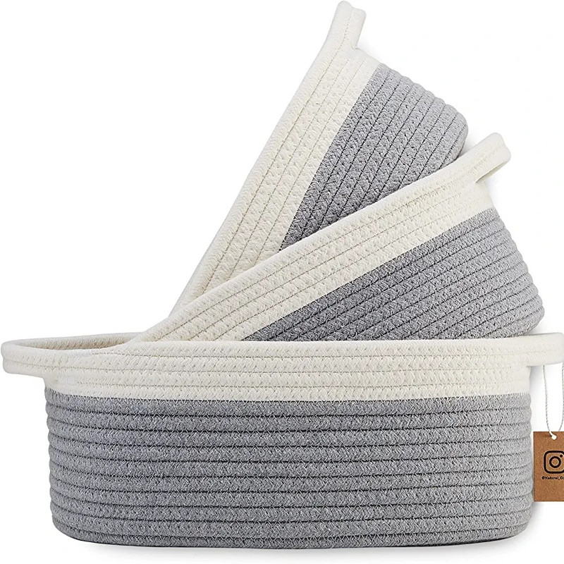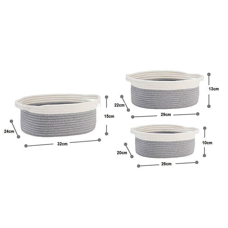 ست سبد نظم دهنده بیضی شکل 3 تکه از ریسمان کتان کاملا طبیعی ساخته شده است.