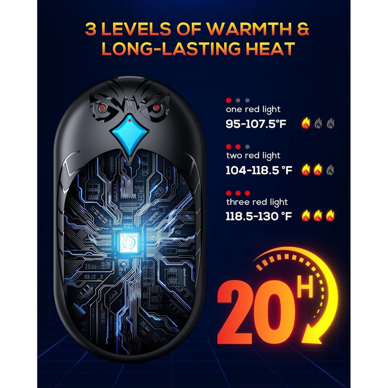 | سایر توضیحات | گرمکنهای دستی مدل AOY-718 قابل شارژ، بسته ۲ عددی گرمکن دستی برقی ۶۰۰۰ میلیآمپر ساعتی قابل استفاده مجدد، بخاری جیبی قابل حمل، هدیه برای کریسمس، کمپینگ، گلف، شکار آخرین طراحی ۲۰۲۳ : طراحی گرمکنهای دستی قابل شارژ از عقاب سرسفید آمریکایی الهام گرفته شده است. ساخته شده از آلیاژ آلومینیوم درجه یک هوانوردی و مواد ABS، این محصول اولین انتخاب برای هدیه و استفاده شخصی است. 2 در 1 جمع و جور و قابل حمل : این دو گرمکن دست را میتوان به هم متصل کرد تا در یک گرمکن قرار گیرند یا جداگانه استفاده شوند. با اندازه کف دست و وزن سبک، این گرمکنها در زمستانهای سرد، جزو گرمکنهای جیبی ضروری هستند. گرمایش پایدار و سریع : این گرمکنهای دست با گرمایش سریع تا دمای تنظیمشده، ۳ سطح برای رفع نیازهای گرمادرمانی مبتلایان به آرتریت رینود ارائه میدهند. ایدهآل برای کمپینگ، اسکی، شکار، گلف، فوتبال و سایر فعالیتهای زمستانی در فضای باز. زمان گرمایش طولانیتر : این گرمکنهای دست که با دو بسته باتری لیتیوم-یونی ۳۰۰۰ میلیآمپر ساعتی کار میکنند، میتوانند ۸.۵ تا ۲۰ ساعت دوام بیاورند. یک بار شارژ، نیاز گرمایشی یک روز کامل را تأمین میکند. ایمن و قابل اعتماد : این گرمکنهای دست که توسط FCC، CE و RoHS تأیید شدهاند، دارای محافظت در برابر اتصال کوتاه و اضافه بار نیز هستند. سیستم کنترل دمای داخلی از گرم شدن بیش از حد جلوگیری میکند و ایمنی شما را در حین استفاده تضمین میکند. |