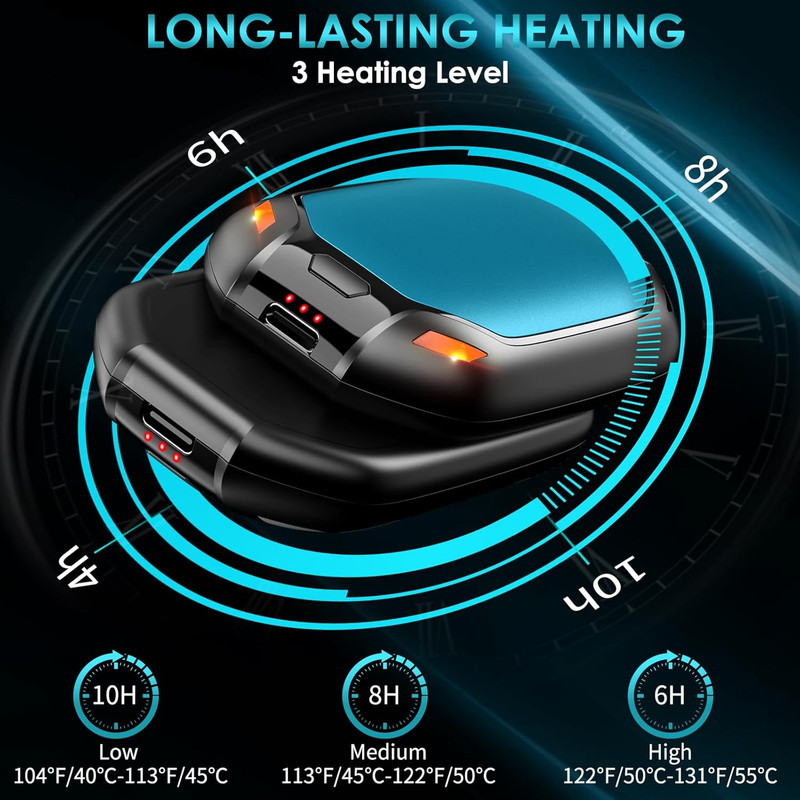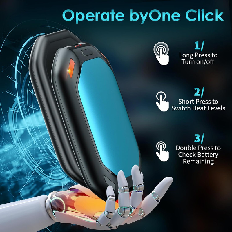 2 گرم‌کن دستی قابل شارژ :قابلیت استفاده مجدد و گرمایش سریع، این گرم‌کن دستی را به یک گرم‌کن جیبی قابل حمل ضروری زمستانی برای فعالیت‌های خارج از منزل - سفر، ماهیگیری، پیاده‌روی، کمپینگ، اسکی، پیاده‌روی سگ در هوای سرد و غیره - تبدیل می‌کند. یک دکمه برای راه‌اندازی آسان گرم‌کن دستی برقی است.