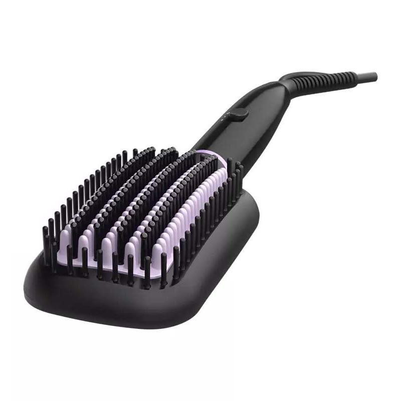 برس حرارتی فیلیپس مدل BHH880 ابزاری حرفهای برای حالتدهی سریع و ایمن مو است که با فناوری ThermoProtect از آسیب دیدن مو و پوست سر در اثر حرارت زیاد جلوگیری میکند. این دستگاه با ابعاد ۳۵۰ × ۷۵ × ۴۸ میلیمتر و وزن ۵۰۰ گرم، بهراحتی در دست قرار میگیرد و کابل ۱٫۸ متری آزادی حرکت کافی را فراهم میکند. برس دارای نوکهای سرامیکی و صفحات سرامیک تورمالین است که حرارت یکنواخت ایجاد کرده و موهایی نرم، براق و سالم ارائه میدهد. دمای دستگاه در دو حالت بین ۱۷۰ تا ۲۰۰ درجه سانتیگراد قابل تنظیم است و در کمتر از ۵۰ ثانیه آماده به کار میشود. همچنین ویژگیهای ایمنی شامل خاموشی خودکار پس از ۶۰ دقیقه و کابل چرخشی برای جلوگیری از گره خوردن سیم است، در حالی که نشانگر LED دمای دستگاه را بهوضوح نمایش میدهد. سری برس با ابعاد ۶۰ × ۱۱۶ میلیمتر و طراحی گسترده، پوشش یکپارچه روی مو ایجاد کرده و حالتدهی صاف یا فر را ساده میکند. به طور کلی، این برس حرارتی گزینهای مناسب برای دستیابی به استایلهای متنوع مو با حفظ سلامت و درخشندگی طبیعی آن است.