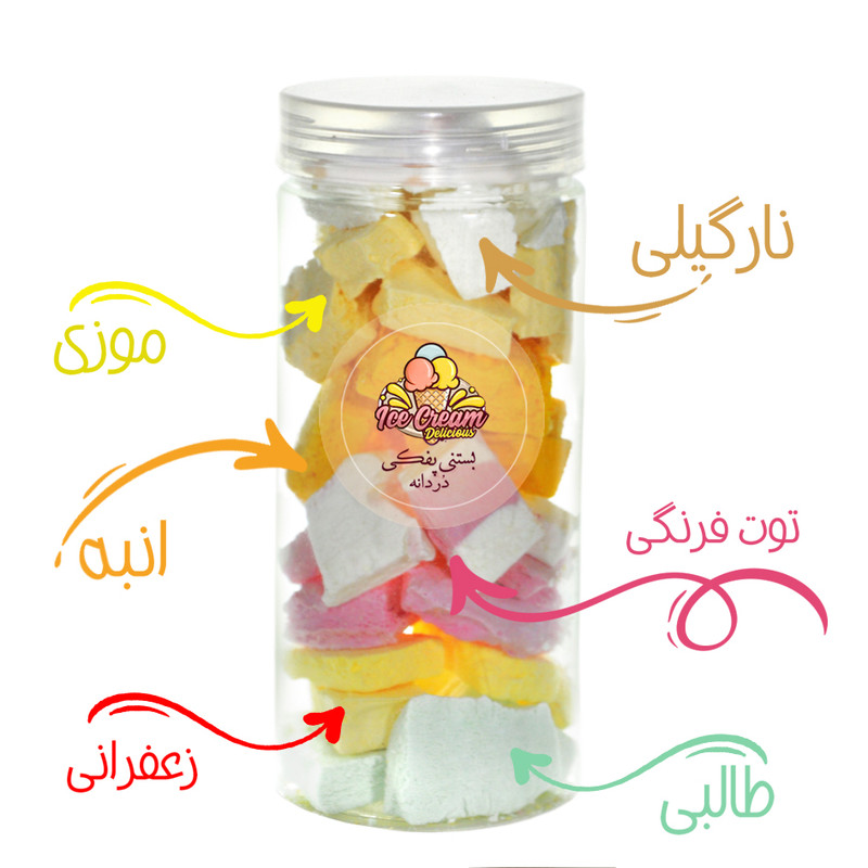 سایر توضیحات | بستنی خشک 6 طعم میوه ای شامل { بستنی نارگیلی . موزی . انبه . توت فرنگی . زعفرانی و طالبی } میباشد |