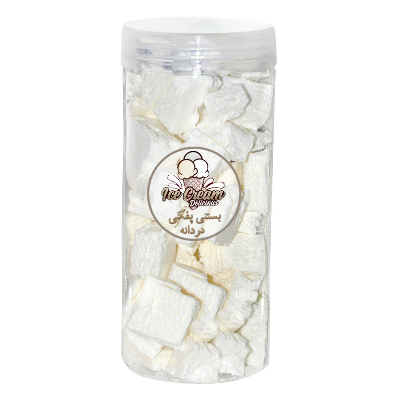 بستنی خشک نارگیلی دردانه یکی از تنقلات لوکس با طعمی فوق العاده است که با دستگاههای فریز درایر به صورت ترد و پفکی خشک شده است. در این تکنولوژی، آب مواد غذایی بدون حرارت و گرما 97 درصد خشک میشود.از آنجایی که حرارت در این فرآیند استفاده نمیشود. بستنی آب نمیشود و به صورت کامل خشک میشود. ( مثل پفک ) بستنی پفکی های دردانه با حفظ خواص بستنی و با همان طعم و عطر و مزه و بدون هیچ ماده افزودنی آماده مصرف برای همه افراد است .و یک میان فوق العاده جذاب و خوشمزه برای پذیرایی از مهمان و برای سفر و گزینه بسیار مناسب برای کوهنوردی و کمپ و البته مصرف آن بجای قند و غیره با چای یا قهوه یا شیر فوق العاده خوشمزه است. در ضمن از آنجا که این محصول در خلا تولید میشود باید در ظرف دربسته نگهداری شود تا ترد و پفکی باقی بماند. اگر ساعتها در معرض هوای آزاد باشد خراب نمیشود فقط نرم میشود و ترد بودنش را از دست میدهد.
