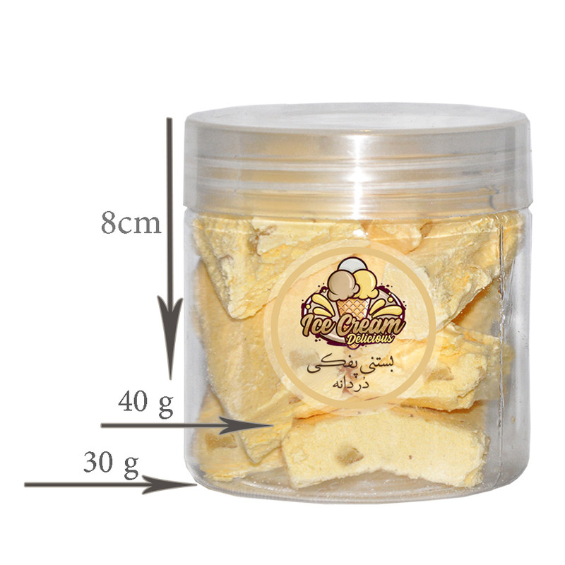 بستنی خشک کره گردو در دانه با طعم جذاب کره و تکه های گردو یکی از تنقلات لوکس است که با دستگاههای فریز درایر به صورت ترد و پفکی خشک شده است. در این تکنولوژی، آب مواد غذایی بدون حرارت و گرما 97 درصد خشک میشود.از آنجایی که حرارت در این فرآیند استفاده نمیشود. بستنی آب نمیشود و به صورت کامل خشک میشود. ( مثل پفک ) بستنی پفکی های دردانه با حفظ خواص بستنی و با همان طعم و عطر و مزه و بدون هیچ ماده افزودنی آماده مصرف برای همه افراد است .و یک میان فوق العاده جذاب و خوشمزه برای پذیرایی از مهمان و برای سفر و گزینه بسیار مناسب برای کوهنوردی و کمپ و البته مصرف آن بجای قند و غیره با چای یا قهوه یا شیر فوق العاده خوشمزه است. در ضمن از آنجا که این محصول در خلا تولید میشود باید در ظرف دربسته نگهداری شود تا ترد و پفکی باقی بماند. اگر ساعتها در معرض هوای آزاد باشد خراب نمیشود فقط نرم میشود و ترد بودنش را از دست میدهد.