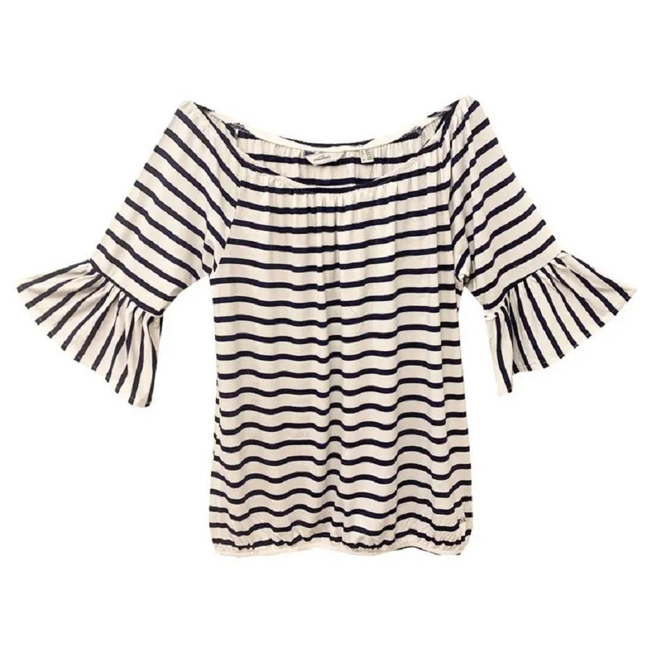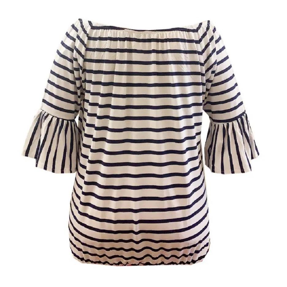 بلوز زنانه چیبو با طرح راه راه سرمه ای سفید و جنس نخی میباشد. در دو سایز M(40-42),L(44-46) موجود میباشد. سایز ها قواره بزرگ دارند. این بلوز مناسب برای خانم بارداری و شیردهی نیز میباشد.