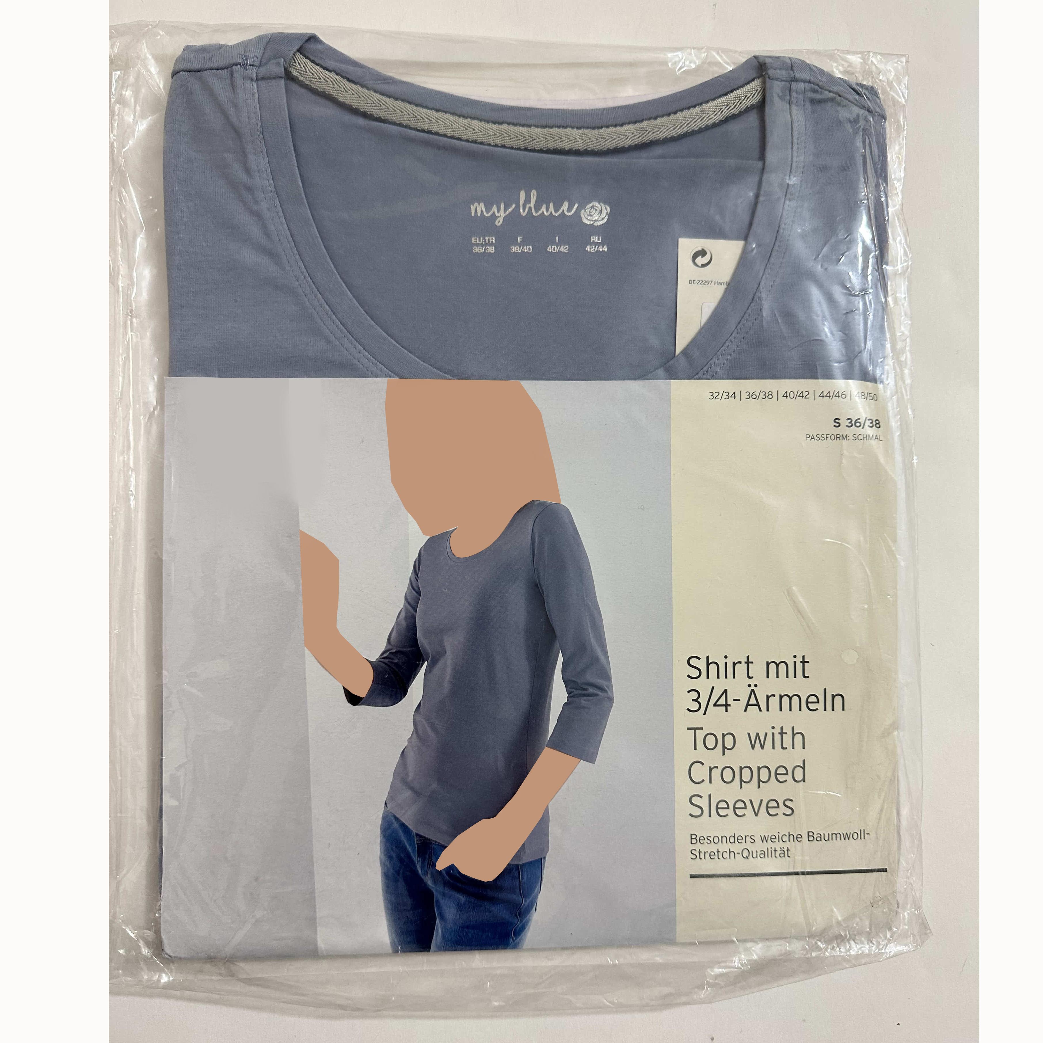 بلوز (تیشرت) آستین سه ریع مدل M647 تولید کشور آلمان می باشد. جنس این بلوز از 96 درصد نخ و 4 درصد الاستین تشکیل شده است. همچنین قد این بلوز زنانه 65 سانتی متر است.