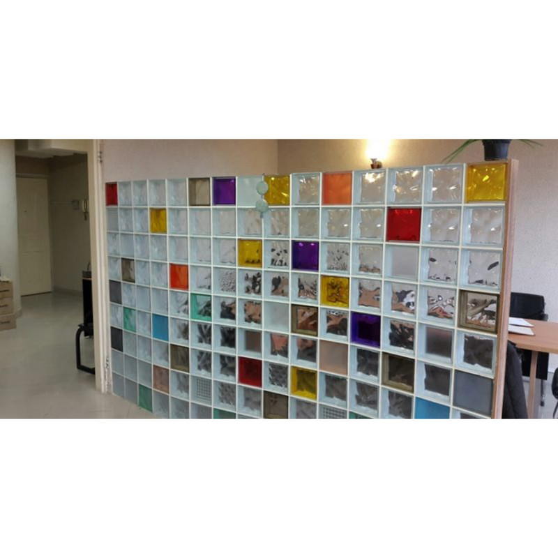 اقلام همراه بلوک های شیشه ای رنگی مات به ابعاد 19*19*8 به وزن هر عدد 2.500 کیلو گرم و در بسته های 6 عددی ساخت کشور چین می باشد و به صورت اسید شور مات گردیده است که از لک شدن شیشه جلوگیری میکند .ضمنا این بلوکها با اسپیسر (فاصله انداز) 10 میلیمتر کار میشود که ابعاد کاری آن میشود 20*20