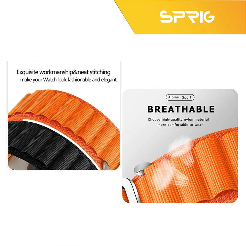 بند اسپریگ مدل Loop Alpine سبک وزن، بادوام و قابل تنظیم، به طور یکپارچه از دو لایه پارچه، بدون دوخت بافته شده می باشد. از قلابهای تیتانیومی مقاوم در برابر خوردگی و بدون زنگ زدگی برای اتصال ایمن استفاده می کند. نوار ساخته شده از مواد نایلونی سازگار با پوست، نوارهای نایلونی کششی بافته شده، قابل تنفس، مقاوم در برابر عرق و مقاوم در برابر آب میباشد. همچنین با قلاب تیتانیوم G، سبک وزن میباشد. مناسب برای کوهنوردی، پیاده روی، دویدن، صخره نوردی، دویدن، دوچرخه سواری و سایر ورزش های ماجراجویی در فضای باز میباشد. بندهای طراحی شده برای ساعت اپل دارای یک هوک فلزی قابل تنظیم برای انعطاف پذیری و ایمن کردن بند شماست.