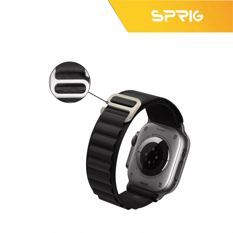 بند اسپریگ مدل Loop Alpine سبک وزن، بادوام و قابل تنظیم، به طور یکپارچه از دو لایه پارچه، بدون دوخت بافته شده می باشد. از قلابهای تیتانیومی مقاوم در برابر خوردگی و بدون زنگ زدگی برای اتصال ایمن استفاده می کند. نوار ساخته شده از مواد نایلونی سازگار با پوست، نوارهای نایلونی کششی بافته شده، قابل تنفس، مقاوم در برابر عرق و مقاوم در برابر آب میباشد. همچنین با قلاب تیتانیوم G، سبک وزن میباشد. مناسب برای کوهنوردی، پیاده روی، دویدن، صخره نوردی، دویدن، دوچرخه سواری و سایر ورزش های ماجراجویی در فضای باز میباشد. بندهای طراحی شده برای ساعت اپل دارای یک هوک فلزی قابل تنظیم برای انعطاف پذیری و ایمن کردن بند شماست.محافظ صفحه های اسپریگ برای ساعت Apple watch Ultra 49 mm دارای مزایایی مانند ضد خط و خش ، نیفتادن حباب روی صفحه نمایش ، ضد باکتری و جرم و نامرئی بودن آن است. این نوع محافظ صفحه ضخامت بسیار کمی نسبت به گلس های شیشه ای دارد بنابراین ظاهر ساعت شما را چندان تغییر نمی دهد. این نوع گلس به دلیل انعطاف پذیری بیشتر ، راحت تر روی گوشی هایی که لبه های منحنی دارند قرار می گیرند ولی نصب این نوع محافظ صفحه نیاز به دقت دارد.