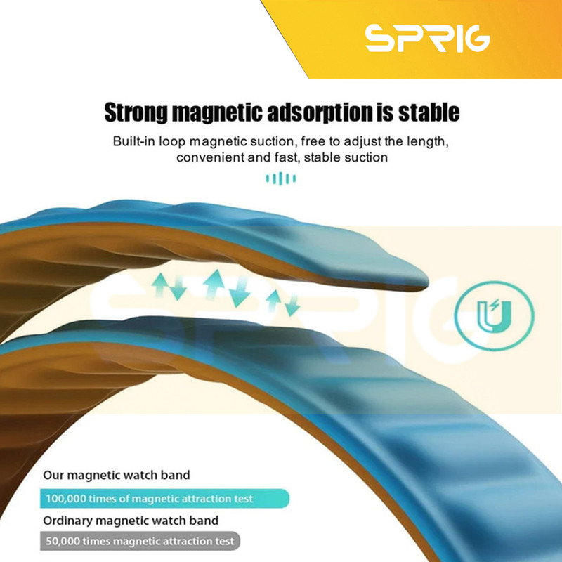 بند سیلیکونی اسپریگ مدل Magnetic Loop برای مدلهای ساعت اپل واچ طراحی شده است. بند سیلیکونی اسپریگ مدل MAGNETIC LOOP به دلیل کیفیت بالای مواد سیلیکونی به کار رفته در آن، محصولی با کیفیت و مرغوب را در اختیار کاربر قرار میدهد. همچنین این بند سیلیکونی اپل واچ مردانه دارای سطحی نرم و بسیار بادوام بوده و حس خوبی را به کاربر منتقل میکند. بند لاستیکی مدل Magnetic Loop اپل واچ وزن سبکی که دارد، راحتی قابل توجهی را برای کاربر فراهم میکند. با خرید این محصول که در رنگ بندی متنوع در دسترس است، میتوان استایل این ساعت را به سلیقه کاربر تغییر داد. از جمله نقاط قوت این بند ، قابلیت نصب و جداسازی سریع آن است. درواقع این بند سیلیکونی دارای قفل فلزی و ضدحساسیت استیل بوده و به خوبی و به سرعت در مچ دست چفت میشود و حس امنیت را در کاربر ایجاد میکند. همچنین دکمهای در این بند ساعت هوشمند قرار داده شده که کاربران میتوانند به راحتی تنها با فشردن آن، بند ساعت را خارج کنند. از جمله قابلیتهای این محصول که کاربران را ترغیب به خرید بند سیلیکونی میکند، میتوان به خاصیت ضدتعریق، ضد گرد و خاک و ضدآب آن اشاره کرد.