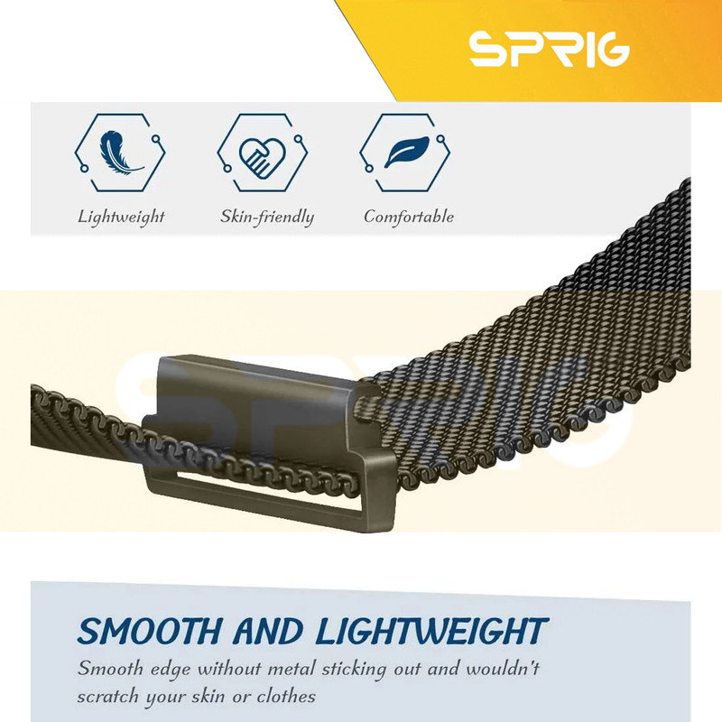 تنوع در بند فلزی میلانس موجب محبوبیت و جذابیت این محصول در بین طرفداران گردیده است. بند میلانس را می توان جز کلاسیک ترین بند های اپل واچ برشمرد. حتی اگر اپل واچ نسخه طلایی هم نداشته باشید با استفاده از بند میلانس، ساعت شما ظاهری لوکس و زیبا خواهد داشت. هر کاربر می تواند به راحتی بند ساعت هوشمند خود را بدون نیاز به ابزار خاصی تعویض نماید. آهنربایی داخل بند فلزی به کار رفته است که باعث میشود بند کاملا دور مچ قرار گیرد و کاربران با هر اندازه ی مچی میتوانند از این بند استفاده کنند و اندازهی آن را به سادگی با مچ دست خود تنظیم کنند. بند میلانس دارای بافتی ظریف و شیک میباشد، همچنین نسبت به سایر بند های اپل واچ ماندگاری و دوام بیشتری دارد. برخلاف تصور اکثر کاربران این بند روی دست سنگینی ندارد و کاربر احساس راحتی و رضایت خاطر خواهد داشت.