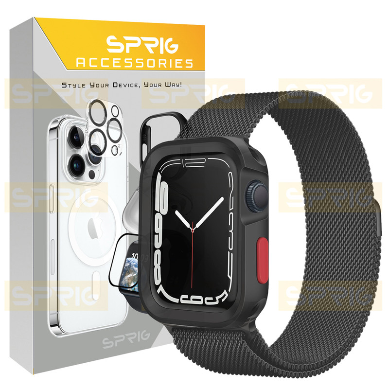 بند اسپریگ مدل Milanese Amizze مناسب برای اپل واچ سری 4/5/6/7/8/9/Se سایز 40/41 میلی متری به همراه کاور