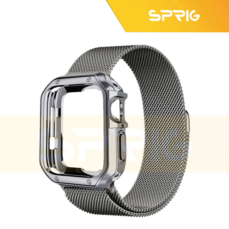 بند اسپریگ مدل Milanese Lux Guard مناسب برای اپل واچ سری 7/8/9 سایز 41 میلی متری به همراه کاور