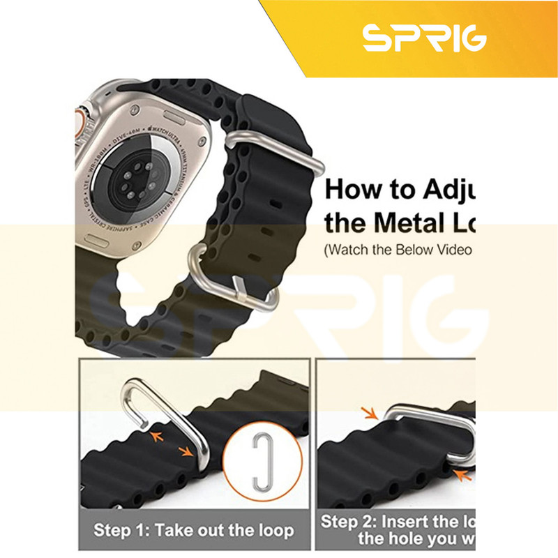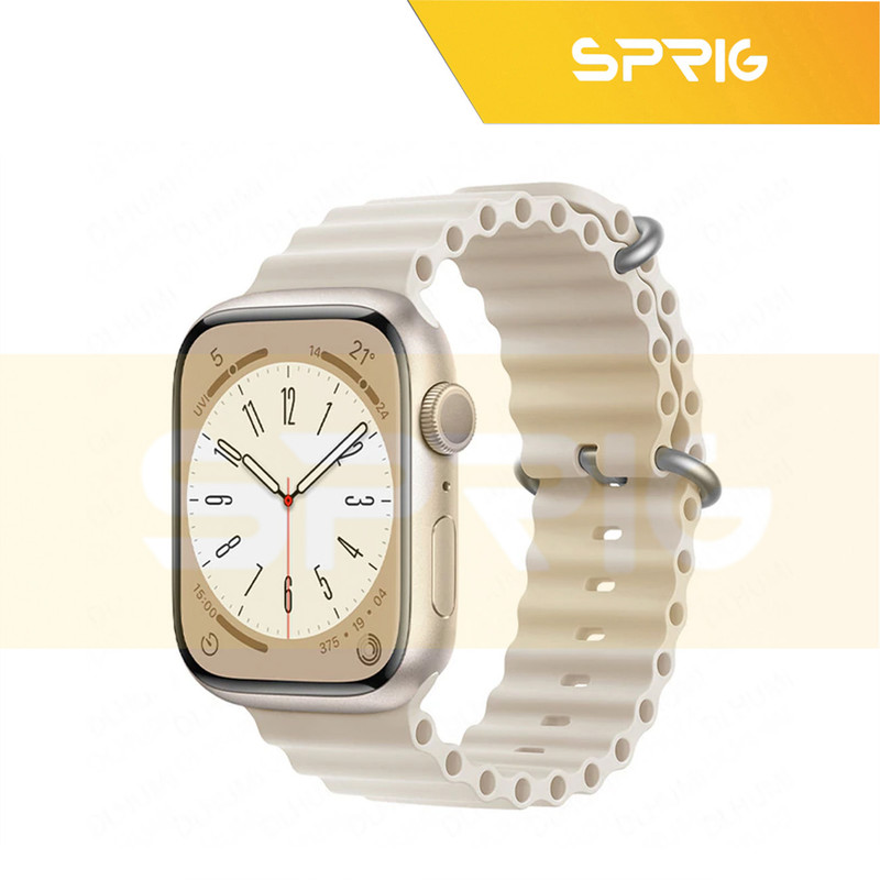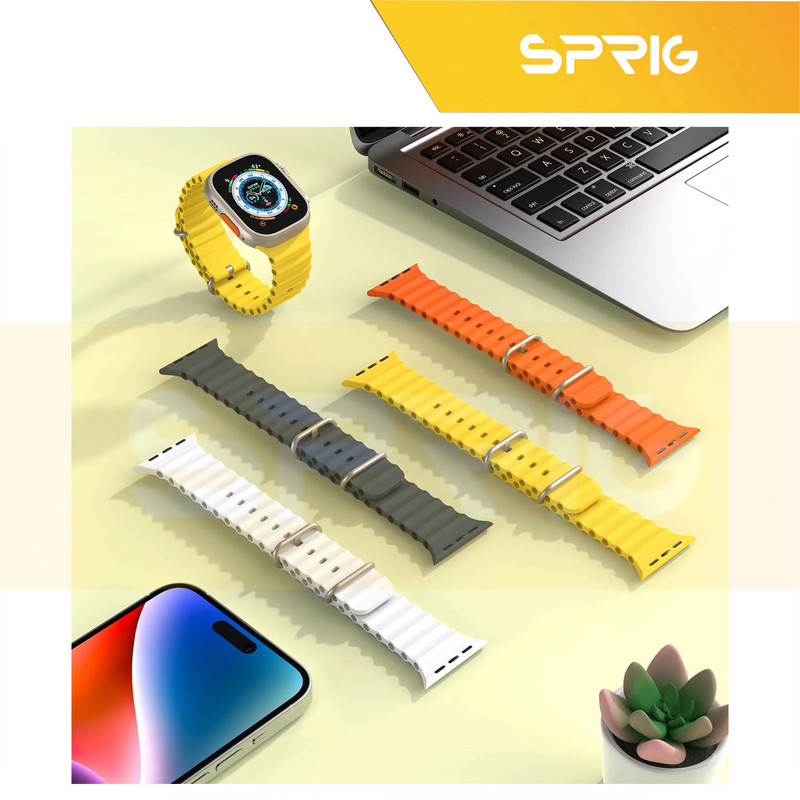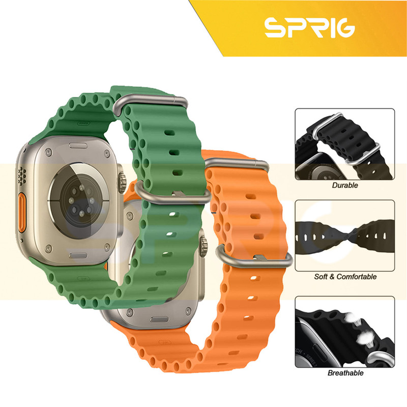 بند اسپریگ مدل Ocean سبک وزن، بادوام و قابل تنظیم، به طور یکپارچه از دو لایه پارچه، بدون دوخت بافته شده می باشد. از قلاب‌های تیتانیومی مقاوم در برابر خوردگی و بدون زنگ زدگی برای اتصال ایمن استفاده می کند. نوار ساخته شده از جنس سیلیکون سازگار با پوست، قابل تنفس، مقاوم در برابر عرق و مقاوم در برابر آب میباشد. همچنین با قلاب تیتانیوم ، سبک وزن میباشد. مناسب برای کوهنوردی، پیاده روی، دویدن، صخره نوردی، دویدن، دوچرخه سواری و سایر ورزش های ماجراجویی در فضای باز میباشد. بندهای طراحی شده برای ساعت اپل دارای یک هوک فلزی قابل تنظیم برای انعطاف پذیری و ایمن کردن بند شماست.