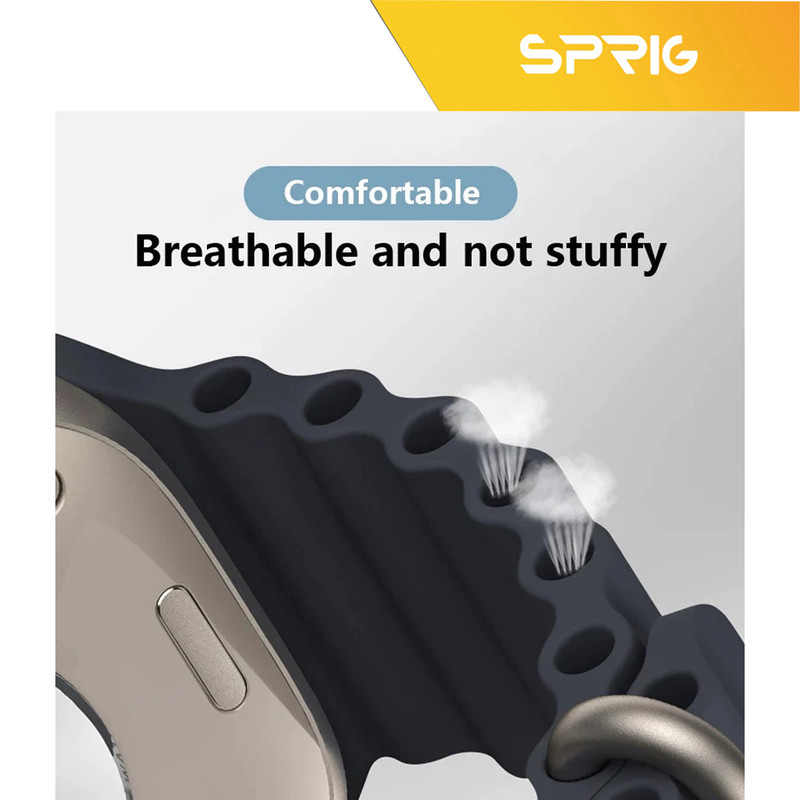 بند اسپریگ مدل Ocean سبک وزن، بادوام و قابل تنظیم، به طور یکپارچه از دو لایه پارچه، بدون دوخت بافته شده می باشد. از قلابهای تیتانیومی مقاوم در برابر خوردگی و بدون زنگ زدگی برای اتصال ایمن استفاده می کند. نوار ساخته شده از جنس سیلیکون سازگار با پوست، قابل تنفس، مقاوم در برابر عرق و مقاوم در برابر آب میباشد. همچنین با قلاب تیتانیوم ، سبک وزن میباشد. مناسب برای کوهنوردی، پیاده روی، دویدن، صخره نوردی، دویدن، دوچرخه سواری و سایر ورزش های ماجراجویی در فضای باز میباشد. بندهای طراحی شده برای ساعت اپل دارای یک هوک فلزی قابل تنظیم برای انعطاف پذیری و ایمن کردن بند شماست.