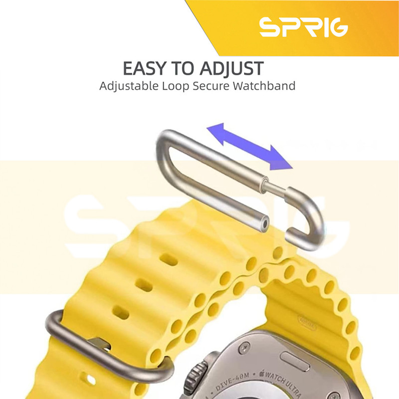 بند اسپریگ مدل Ocean سبک وزن، بادوام و قابل تنظیم، به طور یکپارچه از دو لایه پارچه، بدون دوخت بافته شده می باشد. از قلابهای تیتانیومی مقاوم در برابر خوردگی و بدون زنگ زدگی برای اتصال ایمن استفاده می کند. نوار ساخته شده از جنس سیلیکون سازگار با پوست، قابل تنفس، مقاوم در برابر عرق و مقاوم در برابر آب میباشد. همچنین با قلاب تیتانیوم ، سبک وزن میباشد. مناسب برای کوهنوردی، پیاده روی، دویدن، صخره نوردی، دویدن، دوچرخه سواری و سایر ورزش های ماجراجویی در فضای باز میباشد. بندهای طراحی شده برای ساعت اپل دارای یک هوک فلزی قابل تنظیم برای انعطاف پذیری و ایمن کردن بند شماست.