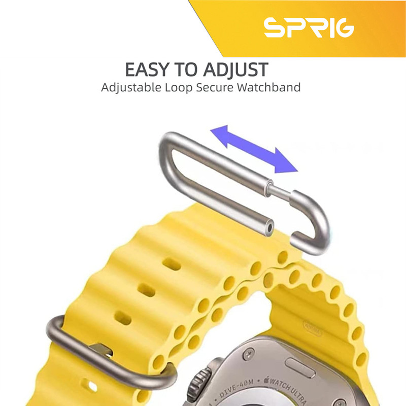 بند اسپریگ مدل Ocean سبک وزن، بادوام و قابل تنظیم، به طور یکپارچه از دو لایه پارچه، بدون دوخت بافته شده می باشد. از قلابهای تیتانیومی مقاوم در برابر خوردگی و بدون زنگ زدگی برای اتصال ایمن استفاده می کند. نوار ساخته شده از جنس سیلیکون سازگار با پوست، قابل تنفس، مقاوم در برابر عرق و مقاوم در برابر آب میباشد. همچنین با قلاب تیتانیوم ، سبک وزن میباشد. مناسب برای کوهنوردی، پیاده روی، دویدن، صخره نوردی، دویدن، دوچرخه سواری و سایر ورزش های ماجراجویی در فضای باز میباشد. بندهای طراحی شده برای ساعت اپل دارای یک هوک فلزی قابل تنظیم برای انعطاف پذیری و ایمن کردن بند شماست.